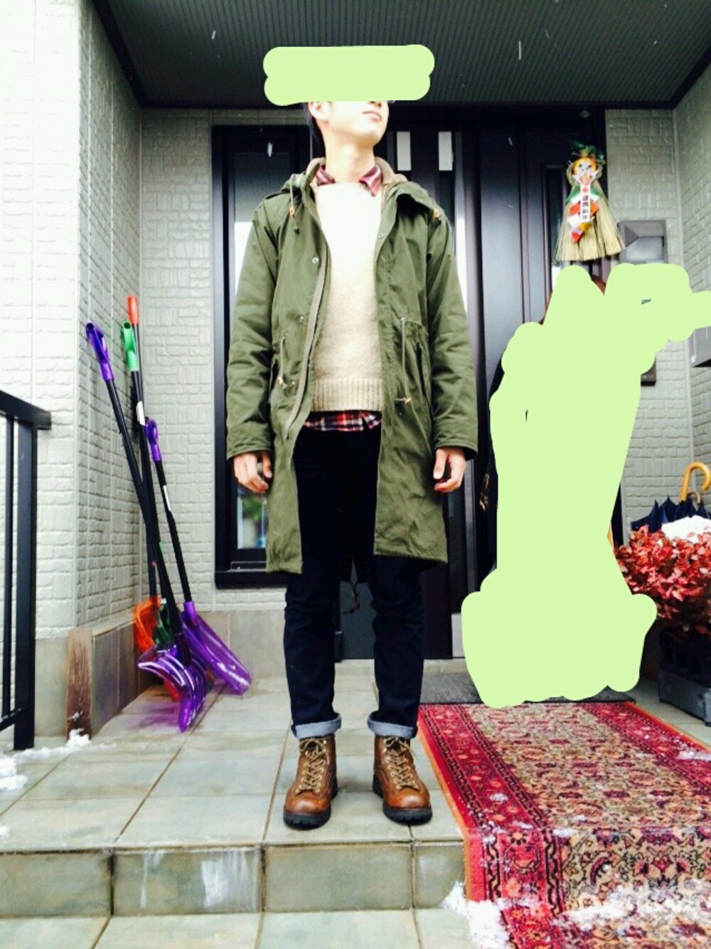 初投稿です! ずっと着てみたかったモッズコートを貰ったので、無難にカジュアルな感じで着てみました。 コート、ニット、チェックシャツはJOURNAL STANDARDオリジナル(笑)で、ジーンズはリーバイス511、ブーツはダナーライトです。 襟が片方飛び出てるのは気にしないでください…。