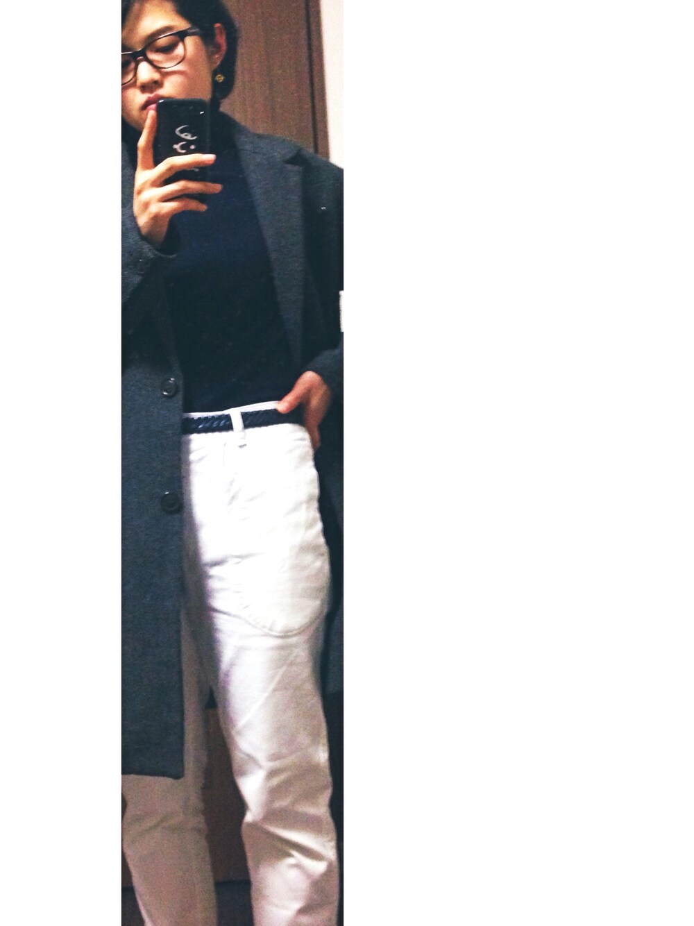 無印良品のタートルネックの着心地が好きです。太めの白のデニムがお気に入り。