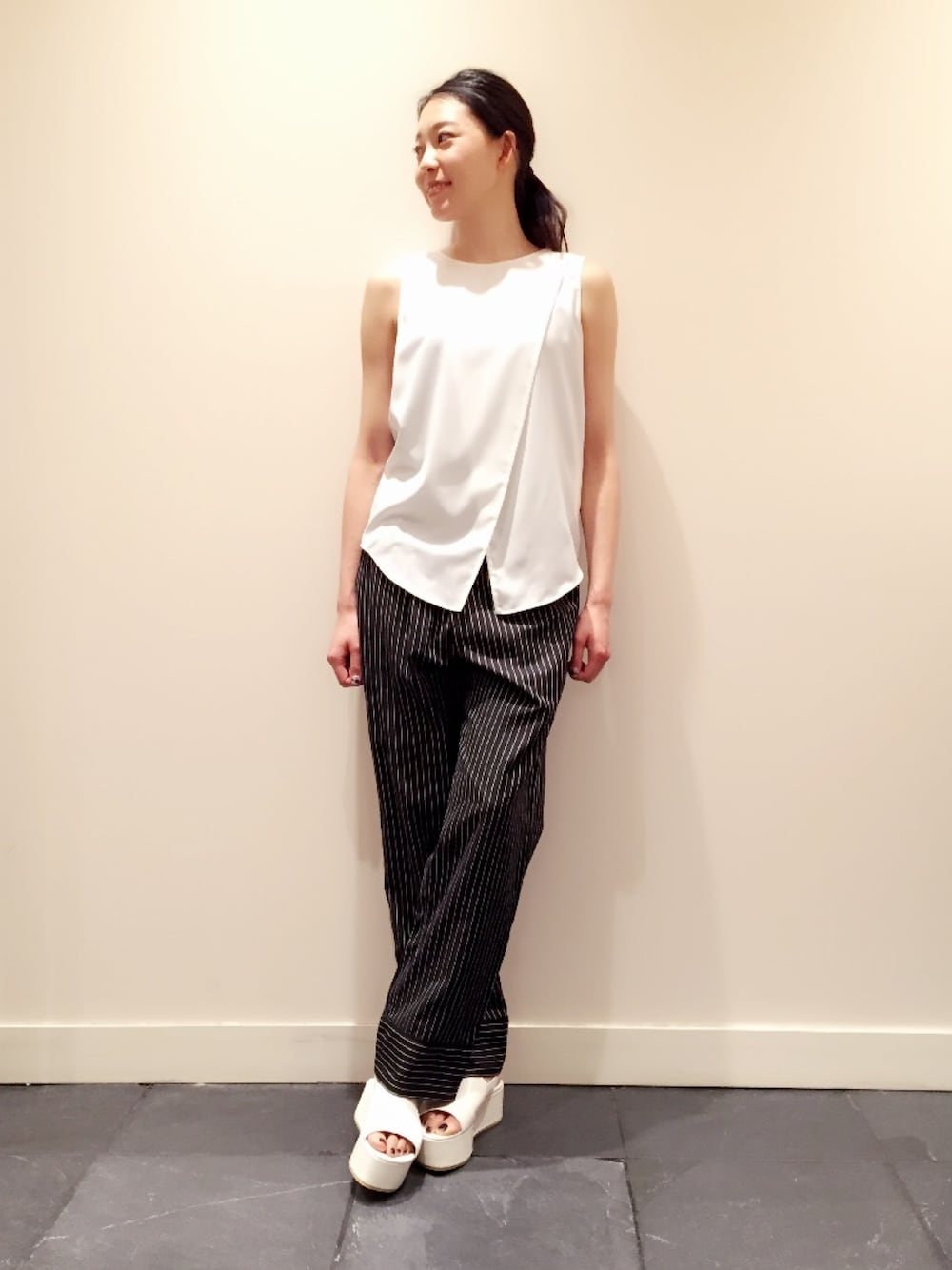 mizuguchi ayaeのシャツ/ブラウス「ASTRAET(アストラット) アシンメトリーノースリーブブラウス◆」を使ったコーディネート