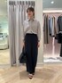 ◎ブロードメタル釦スキッパー オンオフ兼用で着れる一枚です! スキッパーのデザインは首元をすっきり見せてくれるので襟が苦手な方にもオススメ◎ バックシルエットも隠したい所をカバーできる長さになっています。 ◎バックサテンジョーゼットワイドパンツ センタープレスのデザインが程よく綺麗見えするパンツです。 裏地もあり今から冬にかけてロングシーズン履いて頂けます。 着用サイズ38 ウエスト部分内側には紐がついているので調整が可能です。 長さが欲しい方には38がオススメです!