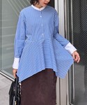 カジュアルになりすぎない!カジュアルコーデ ◎ハンカチーフヘムシャツ 程よく張り感のある素材感です。 動きのあるデザインがアクセントに! パンツとの相性◎ 重ね着にもご使用いただけます。 ◎ルーズストレートデニム ゆったりしたシルエットのデニムです。 柔らかい素材感で履き心地もよくラインを拾わないのでリラックスして履いていただけます。