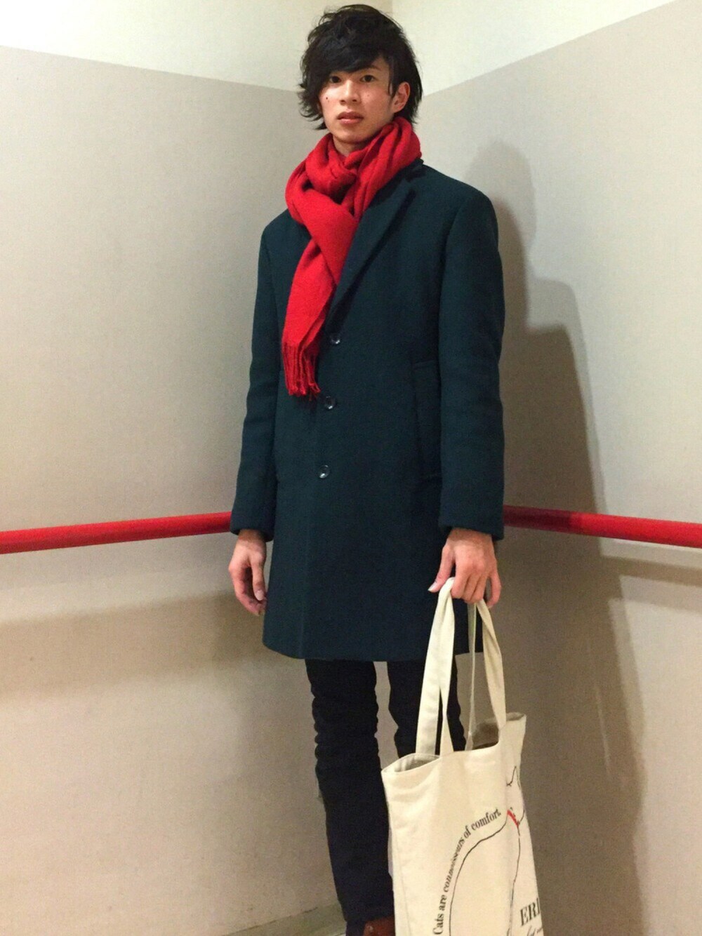差し色は赤が好きです。 まだまだ冷えますね。