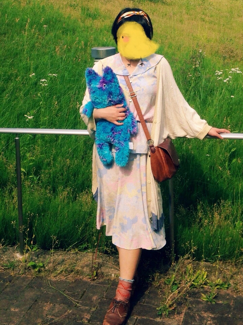 ワンピース:used カーディガン:あるもにー くつ:used(ドクターマーチン) かばん:POU DOU DOU お気に入りのぬいぐるみ🐻 名前は まだら 。