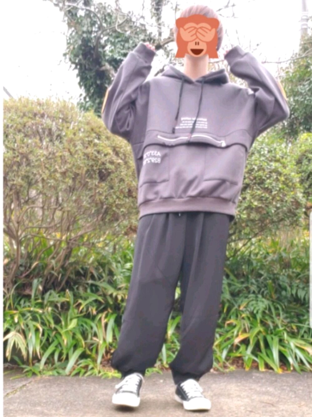 めちゃくちゃゆるコーデ シンプル組み合わせだけどシンプルになり過ぎないデザインのパーカーです 肘にあるパッチがとてもかわいいです