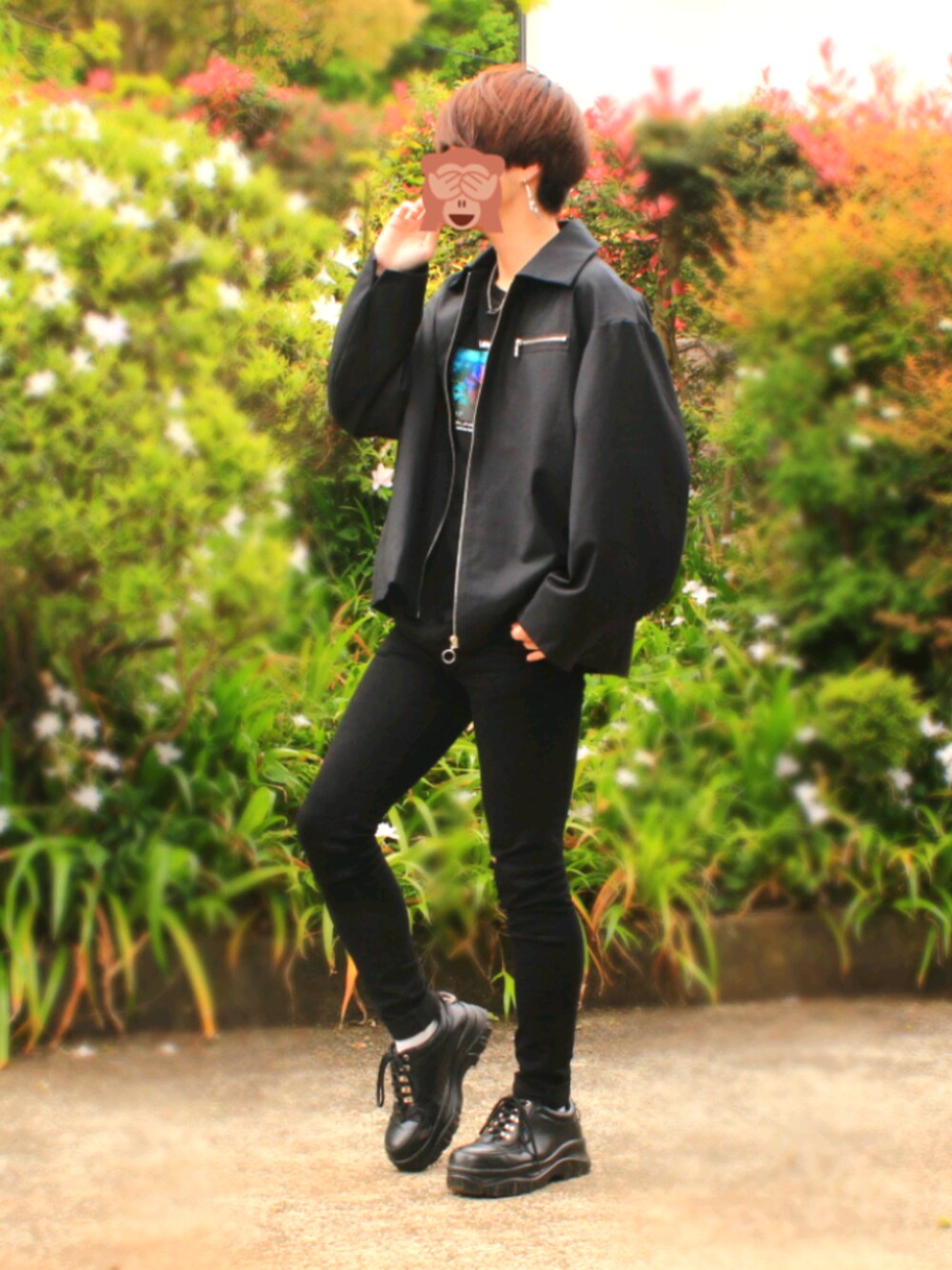 ご覧頂きありがとうございます<(_ _)> やっぱり男だったら黒が好きですよねコーデ! AirTokyoのスウェットのプリントの配色がたまらないです笑