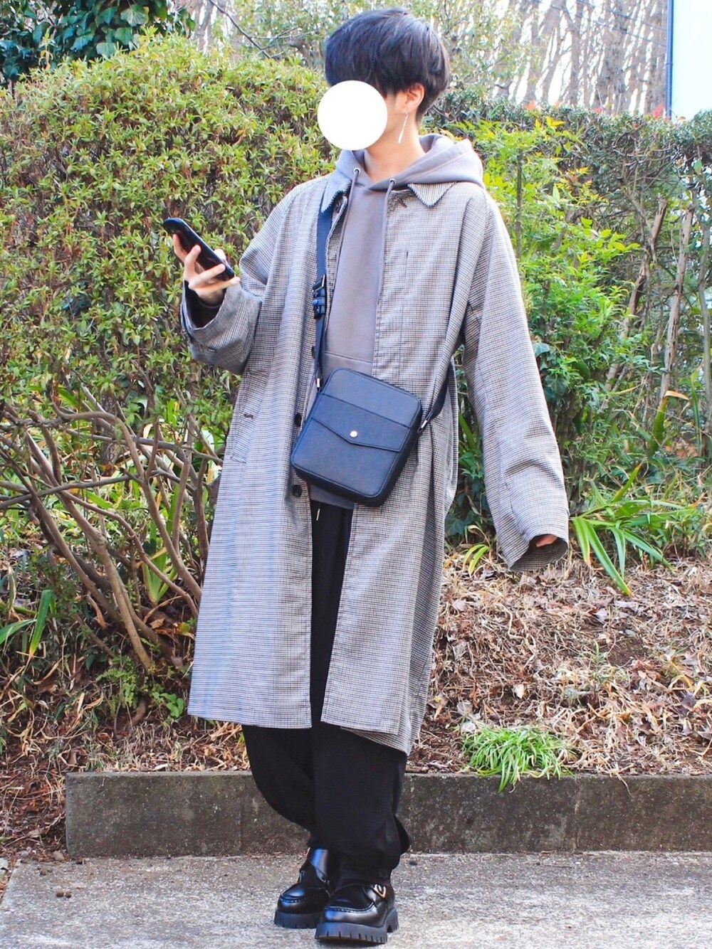 シンのステンカラーコート「A-LINE BAL COLLAR LONG COAT/ステンカラーコート」を使ったコーディネート