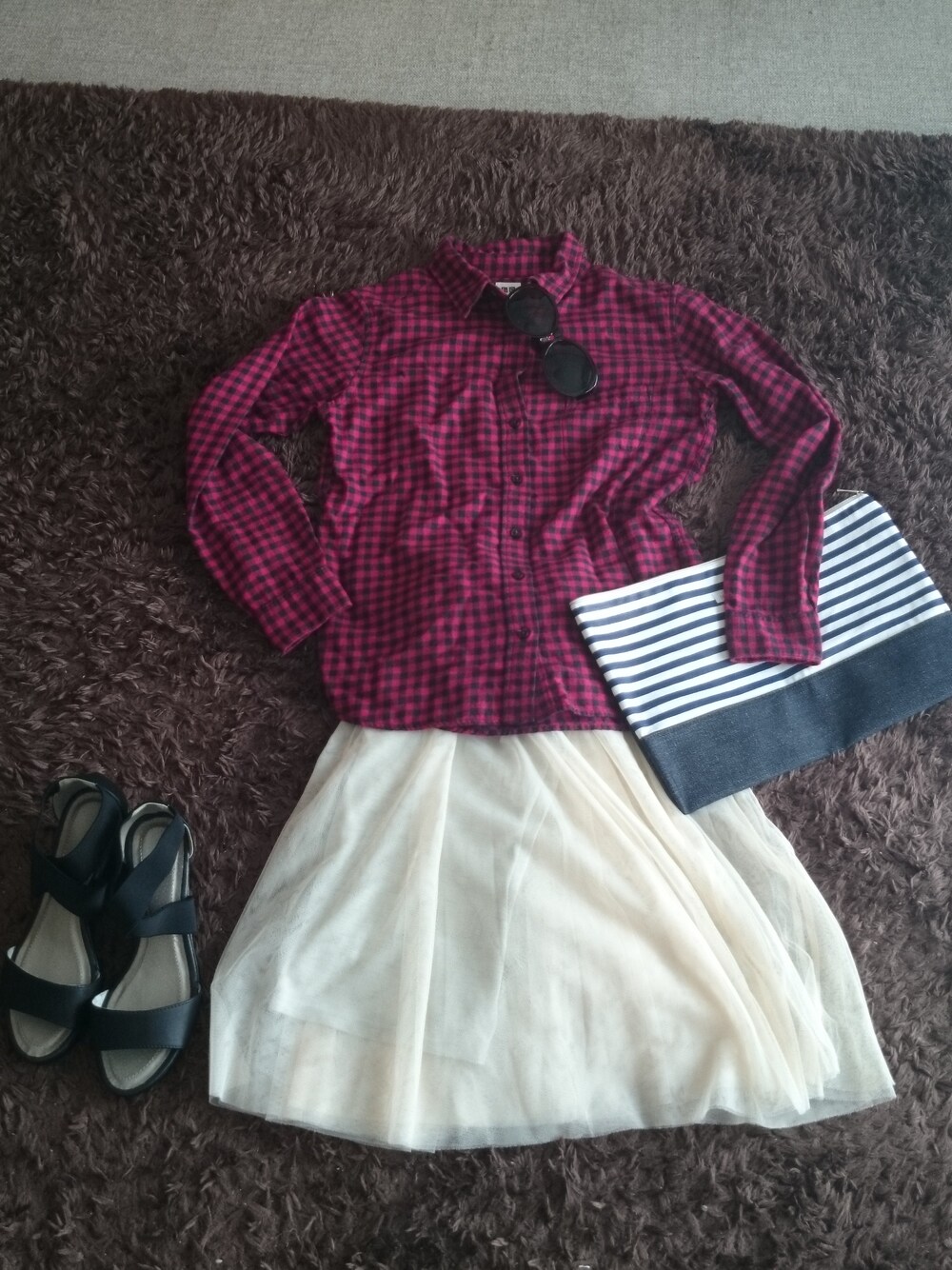 甘いスカートはシャツがあれば着れます笑 クラッチバッグ:sweet付録 シャツ uniqro ジュース gu 中のチュールワンピ the emporium 今日は、カバン探し めっちゃ派手なクラッチ欲しいです