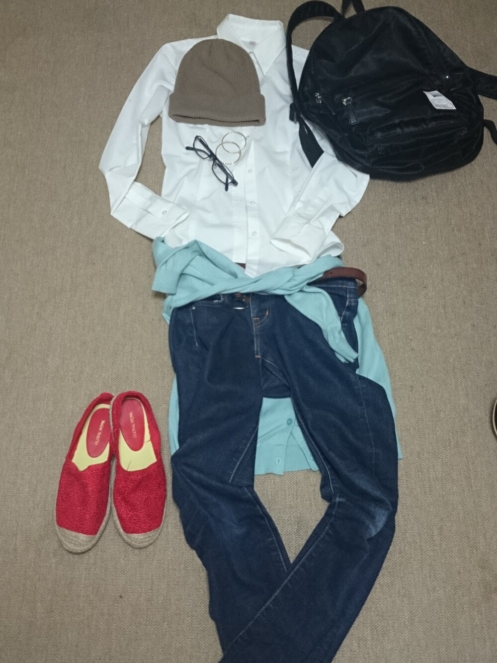 通学スタイル考え中。 赤×ミントグリーンの組み合わせ好きやなー じゃらじゃら小物がほしいですね(  ̄▽ ̄)