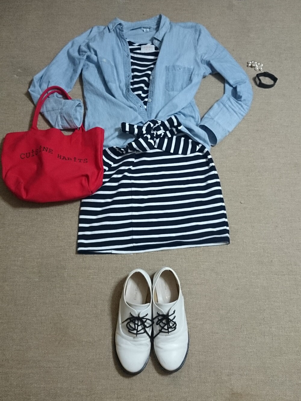 miwariのワンピース「ボーダーリボンワンピース」を使ったコーディネート