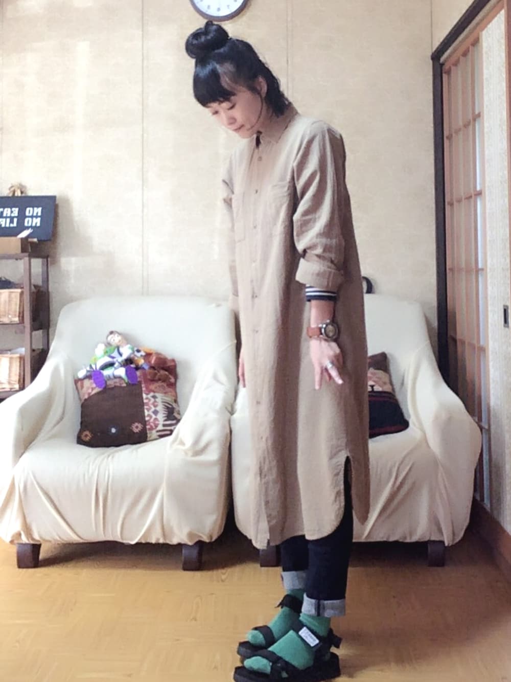 michiのシャツワンピース「マキシシャツワンピース-days」を使ったコーディネート