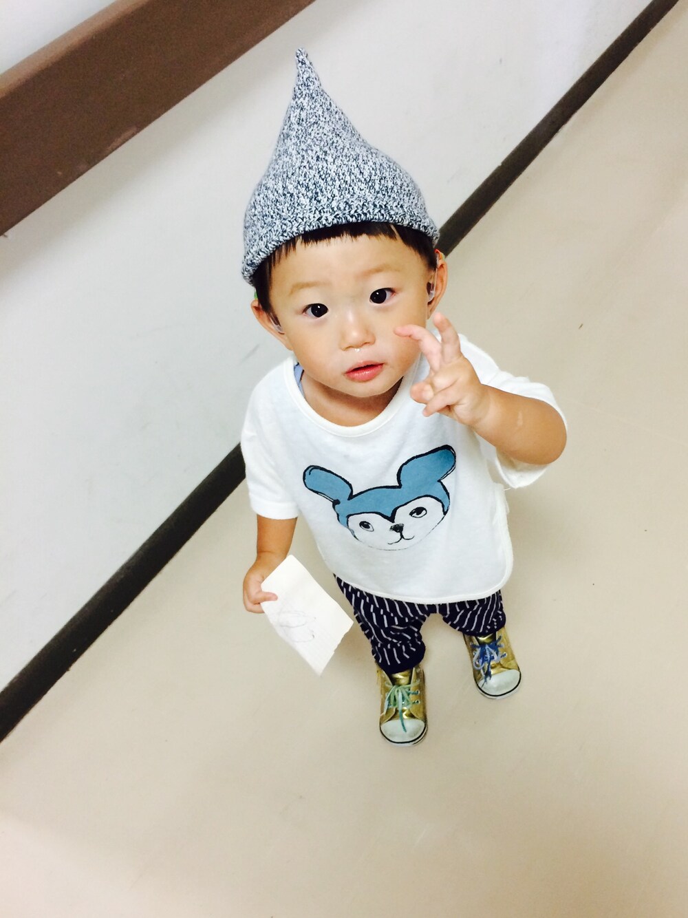 お久しぶりコーデ そろそろ秋服にしたいけど、まだまだ暑すぎる〜 1年の半分以上は鼻水垂れてるそらたくん♪ 今どき…そんな昭和感出してる子供いないぞ‼︎ でも…どうせなら、青鼻出せよ(笑)