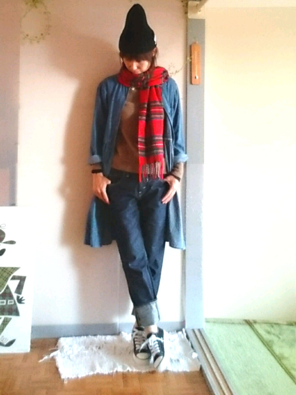 こんにちは👾 見ていただきありがとうございまぁす🎵 お休み最終日は、物を捨てたい衝動に駆られちょっと断捨離しました❗😏 感謝の気持ちを込めてビニール袋に入っていただきました🙏 コーデは、今日もデニデニ~👖👚 中に着たニットはデザインが可愛い😍 仕事に着て行ったら、『あれ❗レース足りなくなっちゃったの⁉笑っ』って言われるパターンのやつ❗💃