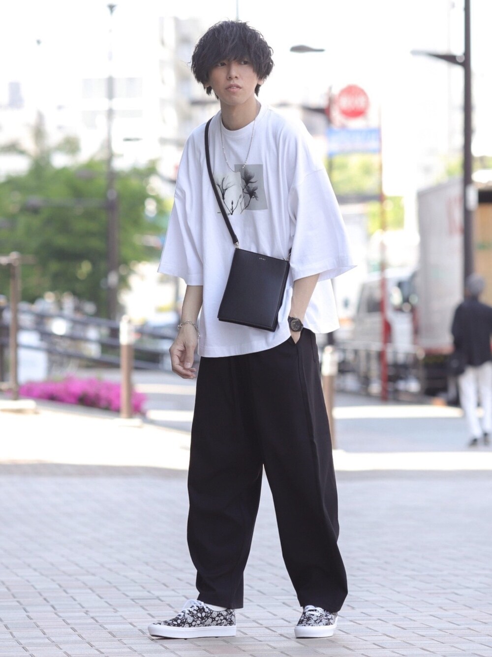 2021.4.28 📎【theme】 プリントTシャツ ✏️【Coordinate】 shiki tokyoの本日4/27に発売した プリントTシャツを 使ったゆるコーデです!! このプリントTシャツは ①生地は大手セレショでも使われた実績のある極上のコットン生地を使用!! きた時の滑らかさがすごく、着心地が半端ないです!! ②他のブランドでは見ないモードなプリント! shikiにちなんで、雨と樹のオリジナルフォトをセレクト!! そこにスモークもかけてモードさを加えました!! shiki tokyoのロゴもさりげなく入ってます! ③色味もshiki オリジナル! オリジナルで染め上げたので、 色味も最高のTシャツとなりました!! という最高のTシャツです! 実は6種類あるのですが、 花はホワイトが 僕は一番気に入ってます!!! これで、値段が5400円+taxという コスパのよさ!! かなりおすすめアイテムです! casper johnの ハカマパンツとあわせて 夏らしいゆるコーデに仕上げました! 良かったら、いいね、お気に入りよろしくお願いします。 ―――――――――――――――――――――― 🔎Instagram ⇒nissy_4ex833 instaでは、コーディネートだけでなく、 ファッションの知識や着こなし方を詳しく解説してます! ぜひ、フォローしていただけると嬉しいです! ご質問等もこちらのDMでお受け致します。 また、御依頼等があればこちらまでお願い致します! プロフィールからも飛べます👌