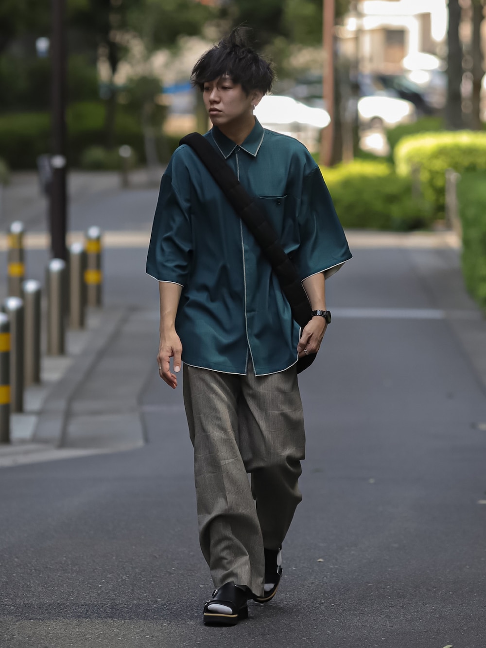 にっしーのシャツ/ブラウス「Oversized Stitch Half Sleeve Shirt / オーバーサイズステッチハーフスリーブシャツ」を使ったコーディネート