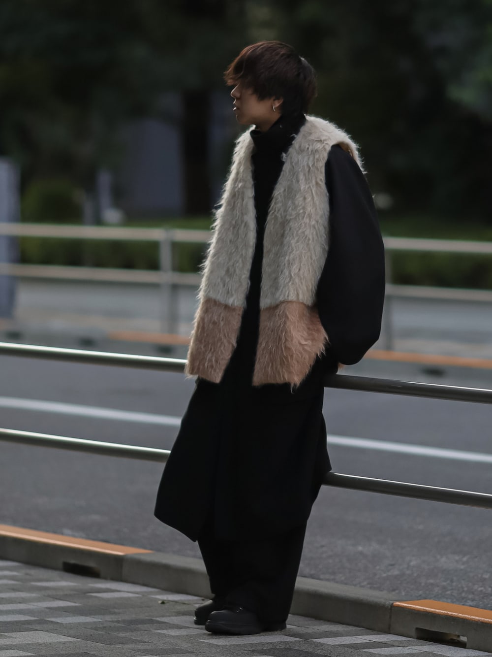 にっしーのチェスターコート「OVERSIZED DOUBLE CHESTER COAT / オーバーサイズダブルチェスターコート」を使ったコーディネート