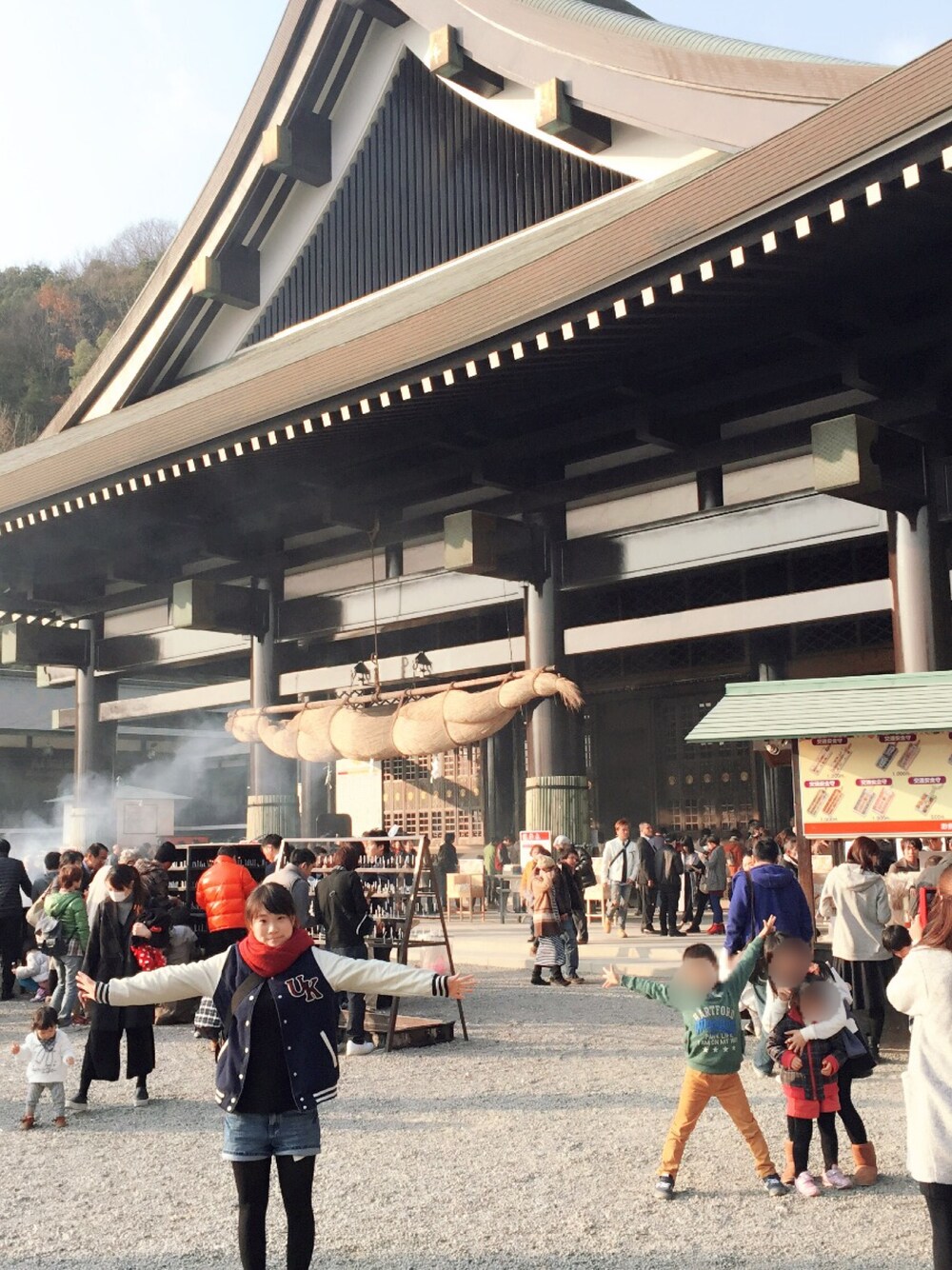 あけましておめでとうございます。 1月4日に初詣に行きました! おみくじは凶でした! しあわせ守り買いました! 全身の写真撮ってもらったら 足がうつってなーいT_T 赤い靴下みえんーT_T でもたまたま近くの子どもと おんなじぽーずしてるとこ 撮ってくれてるー!!(笑)