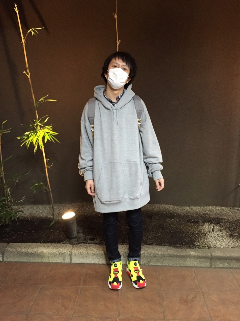 顔がヘルペスでひどいことになってるんでマスクしてます。 最近だぼだぼのトップスが好きです。 ポンプフューリーはもっと好きです。 でっかいハンバーガー食べて岩盤浴してラーメン食べて楽しい休日。