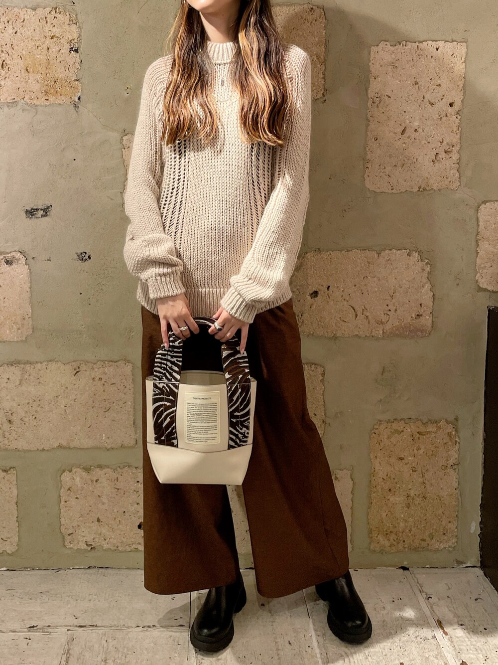 4on(B'2nd 札幌店)のトートバッグ「THEATRE PRODUCTS(シアタープロダクツ)別注ゼブラ柄テープバック / Sサイズ」を使ったコーディネート