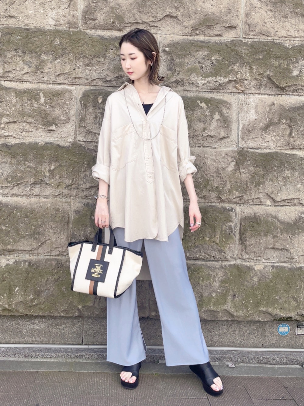 4on(B'2nd 札幌店)のシャツ/ブラウス「Munich(ミューニック)テンセルコットンミリタリークロスビッグシャツ/MN221T86」を使ったコーディネート