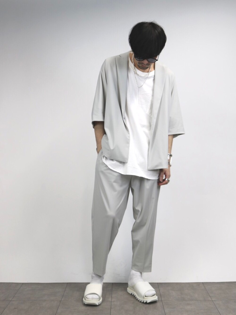 TOMOYOSEのテーラードジャケット「トリコット6分袖1Bオーバージャケット」を使ったコーディネート
