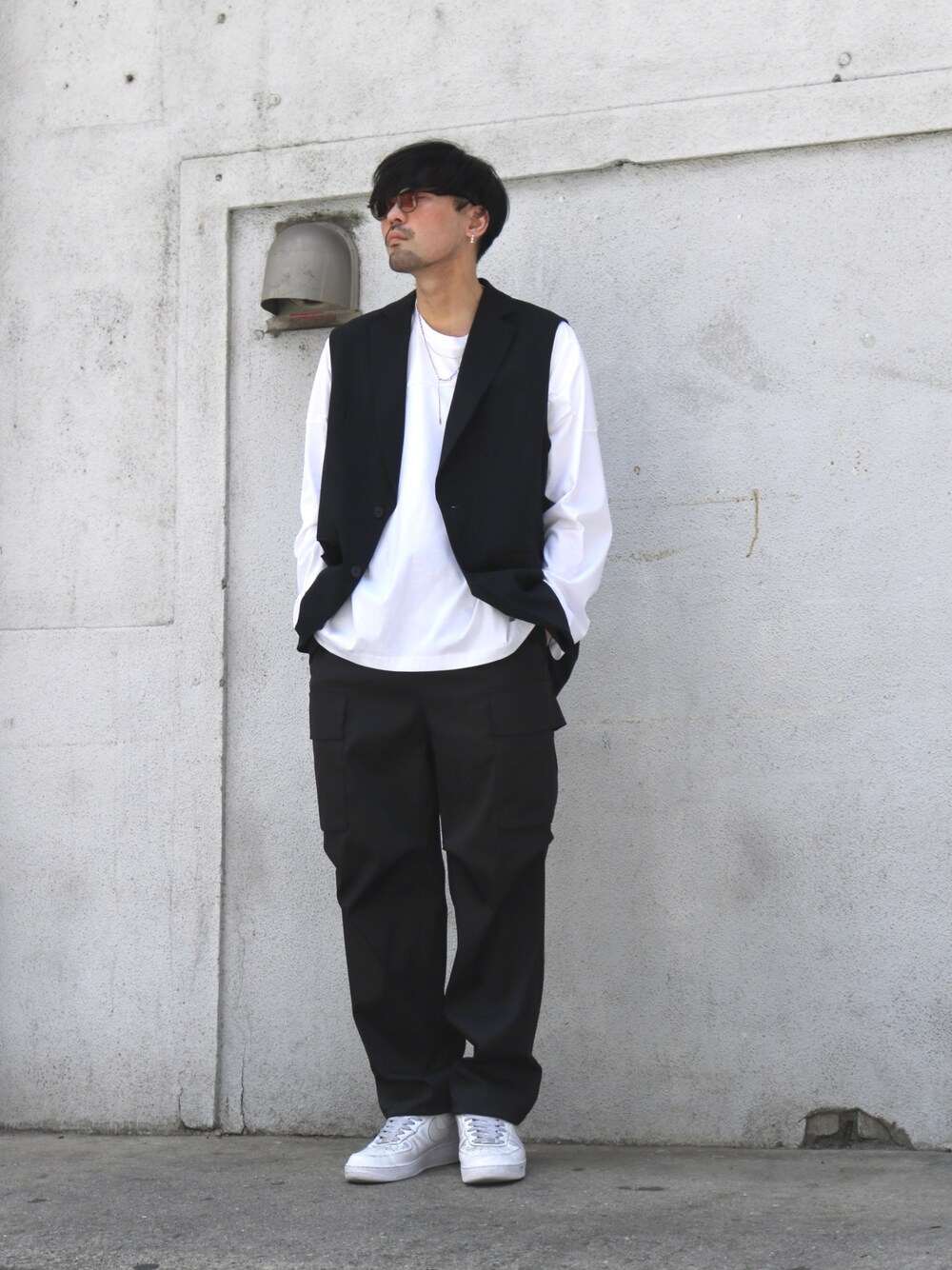 TOMOYOSEのベスト「【2×2 セットアップシリーズ 21Summer】 ビッグシルエットジレ」を使ったコーディネート