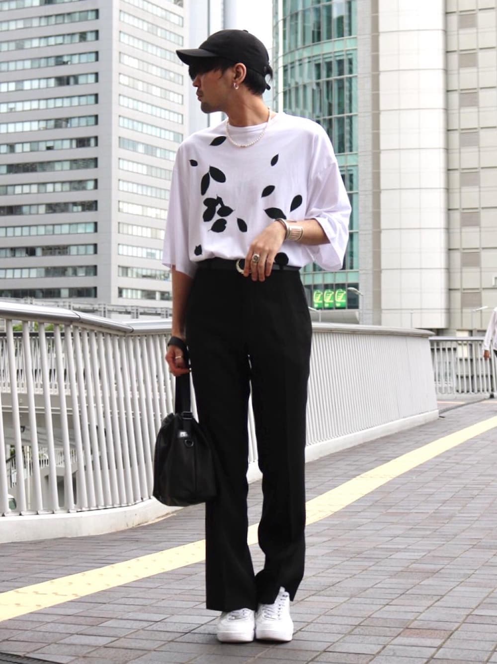 TOMOYOSEのTシャツ/カットソー「【LAD MUSICIAN×Lui's】 リーフ柄スーパービッグTシャツ」を使ったコーディネート