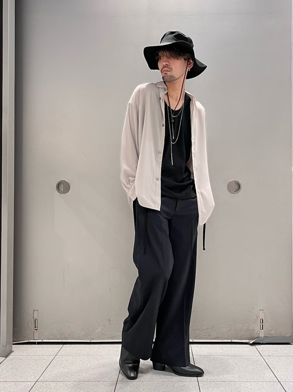毎度ご覧頂きありがとうございます! Lui's HEPFIVEのトモヨセです! 大阪は日中急に暑くなったので涼しいスタイルのご紹介。 【ハット/C.P.H】別注 サファリハット 着用サイズ: Free 【シャツ/Lui's】エアリー無双仕立シャツ 着用サイズ: FREE 【インナー/Robes&Confections】 着用サイズ: One size 【パンツ/Lui's】ワイドレッグパンツ 着用サイズ: M 【シューツ/Lui’s】ヒールブーツ 着用サイズ:42