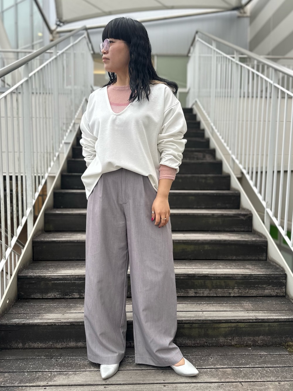 AYANE(www.Q shop.jp Qひたちなかファッションクルーズ店)のTシャツ/カットソー「ブークレダンボールディープVプルオーバー」を使ったコーディネート