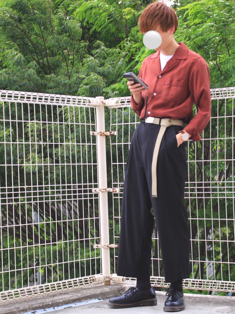 オープンカラーのタックイン!!まさに望んでいたコーデ✨笑 tkさんのこのパンツまじでパナい!笑 裾もワイド加減もどんぴしゃ!!笑 このパンツでやりたいコーデがありあまる!笑 あとこの撮影場所気に入りました笑 次からここで撮ります! いいねフォローコメント等々よろしくお願いします🤲