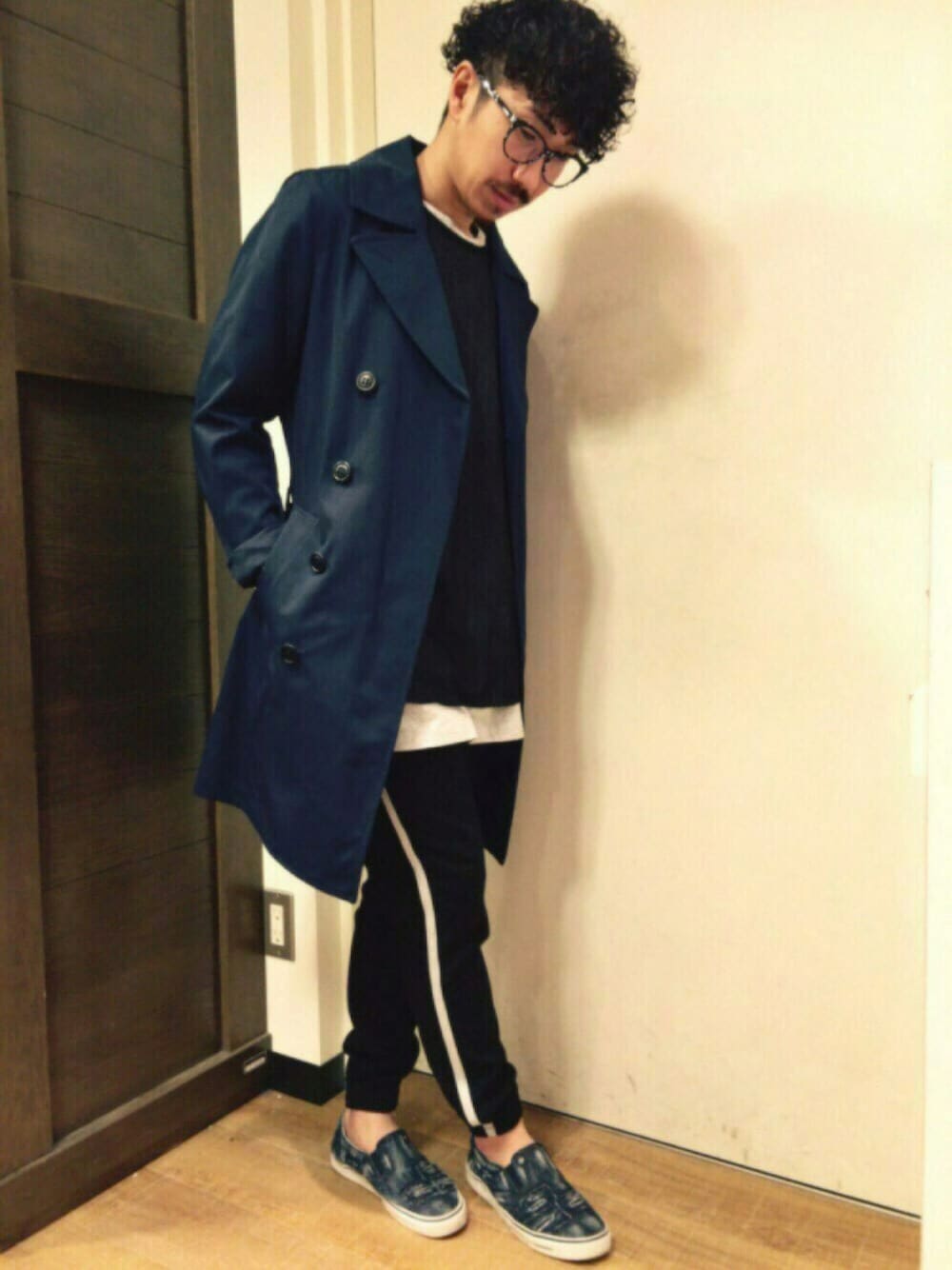 スポーティスタイルに引き締めアイテムのトレンチコートをMIXして大人スタイルにまとめました。