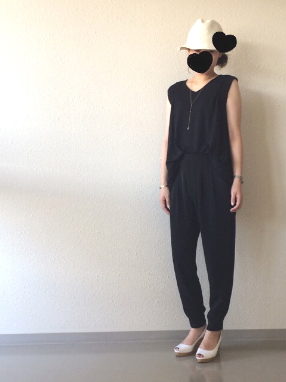 残暑厳しすぎて、溶けそう…⤵︎ 日焼けの後遺症で目の周りがピリピリ😫 お化粧するのも辛いので、用事が終われば即メイクオフでひきこもってます😓 まだまだノースリーブが活躍💦 黒×黒でセットアップ風に。 GUのノースリーブ、生地が厚手なので秋にもインナーに良さそう♡