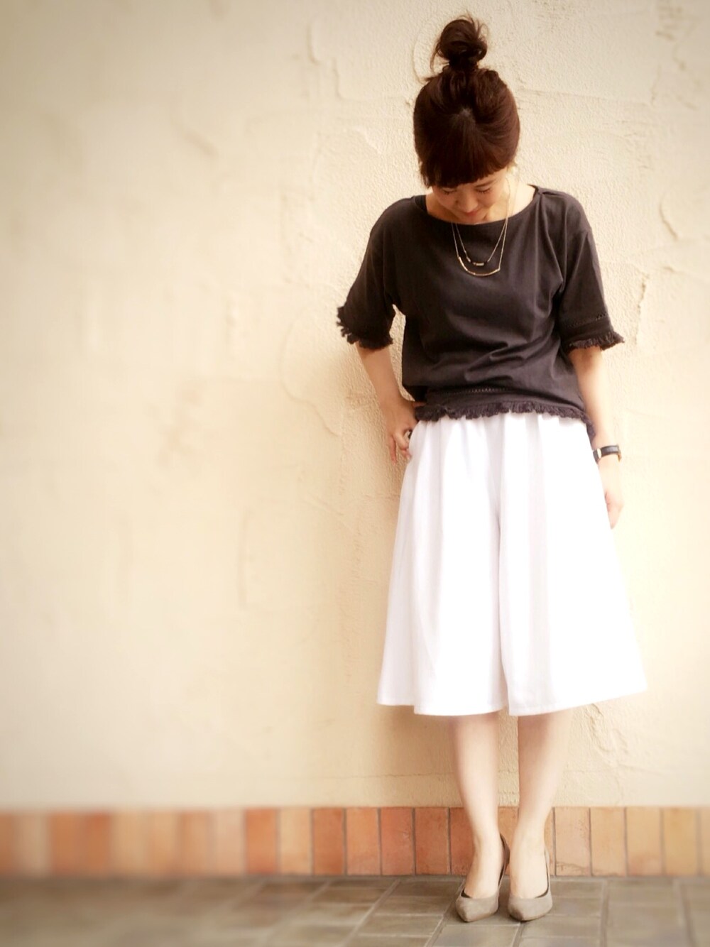 フリンジTシャツ❌スカーチョコーデ 五分袖のTシャツは今年も人気のフリンジ付 1枚で着ても可愛い♡ Tシャツのバリエーションにオススメです! いつも見ていただき( ¤̴̶̷̤́ ‧̫̮ ¤̴̶̷̤̀ )✨ イイね・save・フォローありがとうございます♡
