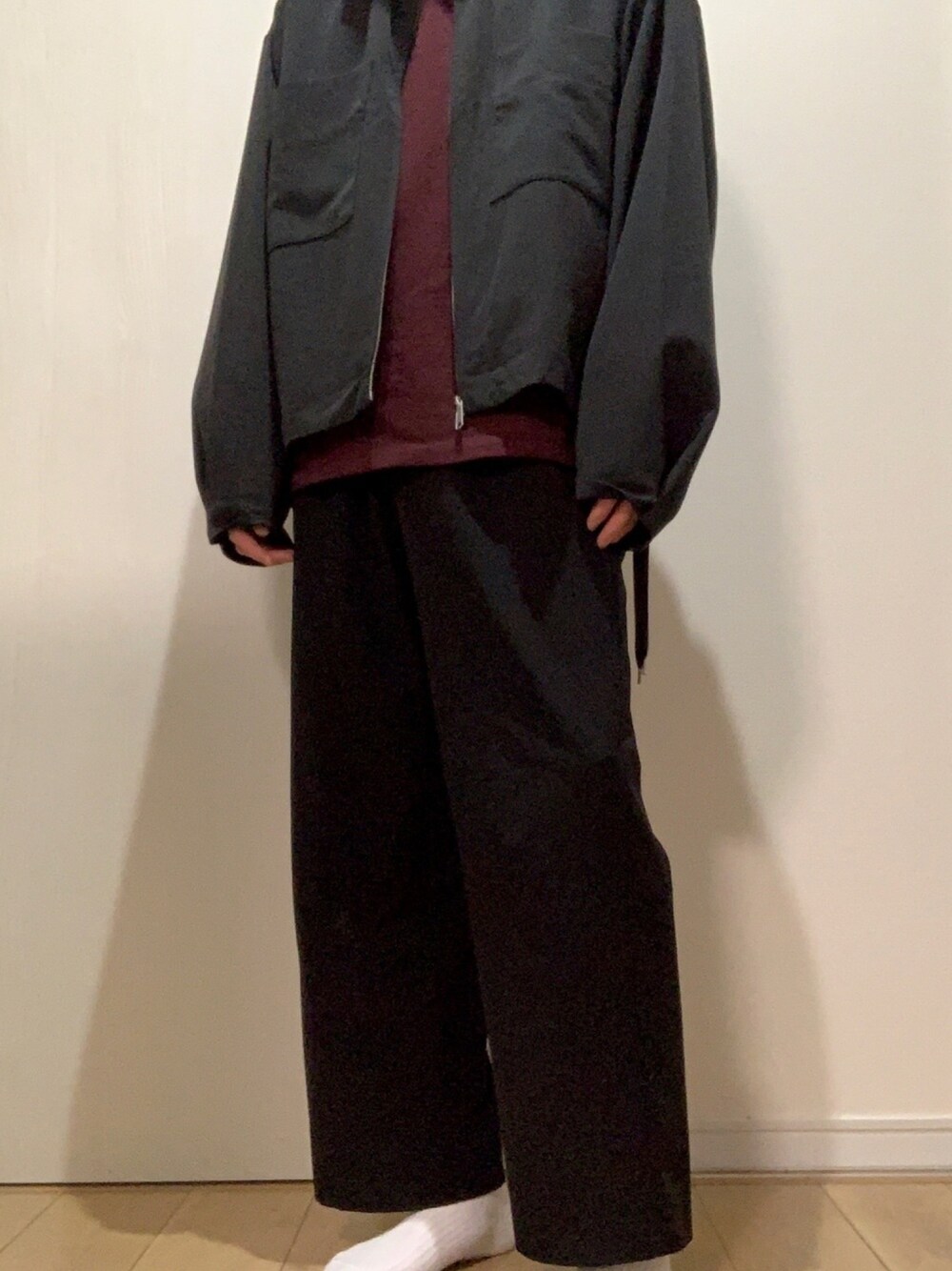 おはようございます。☀ 今回はact'mの黒のブルゾンに黒のワイドパンツを合わせてみました! そしてインナーをワインレッドにすることでかっこよさを引き出しました! 今回は爽やかさを捨てて男らしいコーデです😐 今回も見てくださり有難うごさいました😌