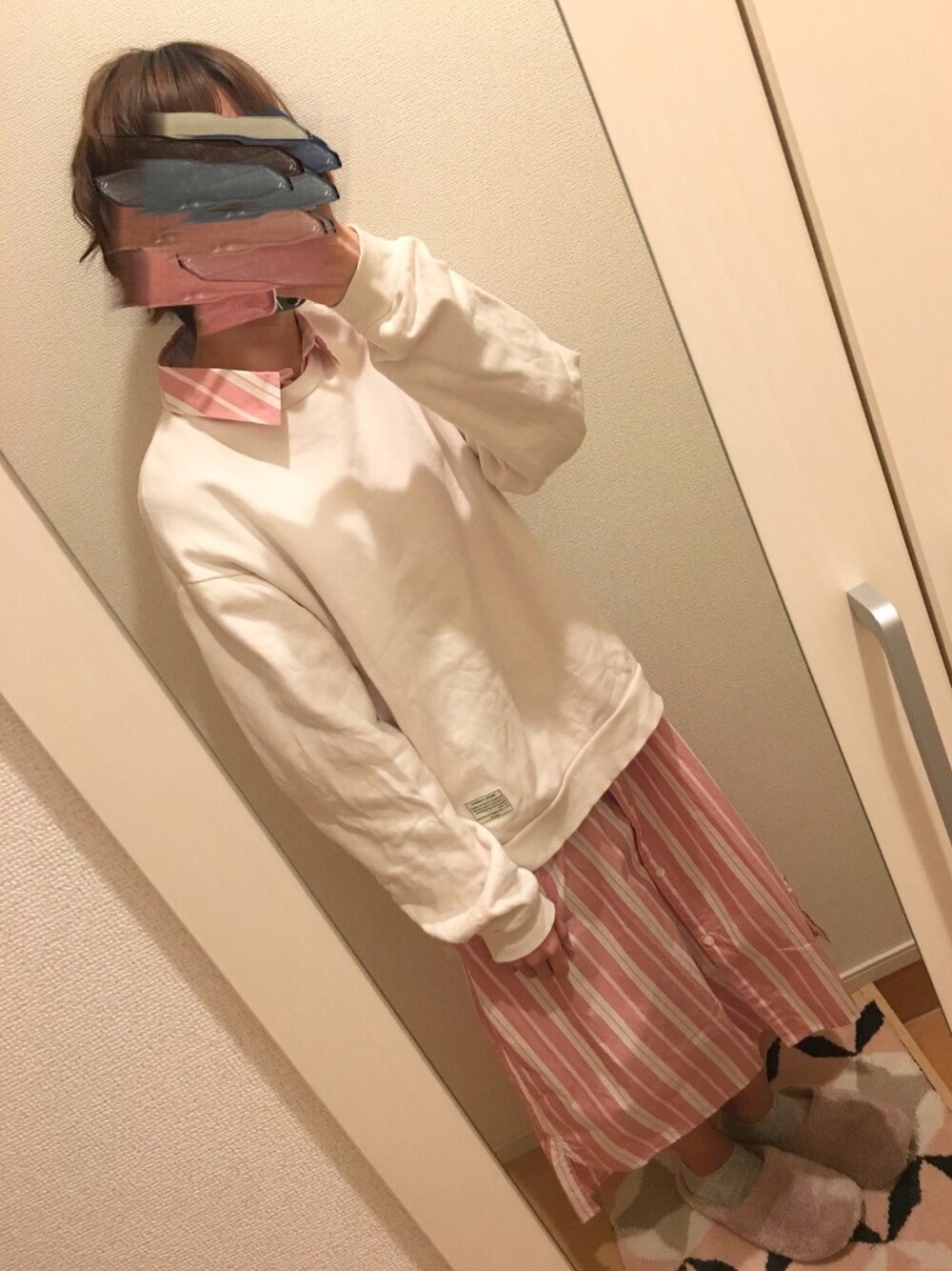 この ストライプシャツワンピが 可愛くって🤤⸜❤︎⸝ 1枚で 着ても 可愛いけど、 こうやって、上からスウェット着ても 可愛いかなって☺️ 商品画像みたいに、羽織にしたり デニムパンツ 履いてみたり 色んな 着方していきたいなぁ😌💓