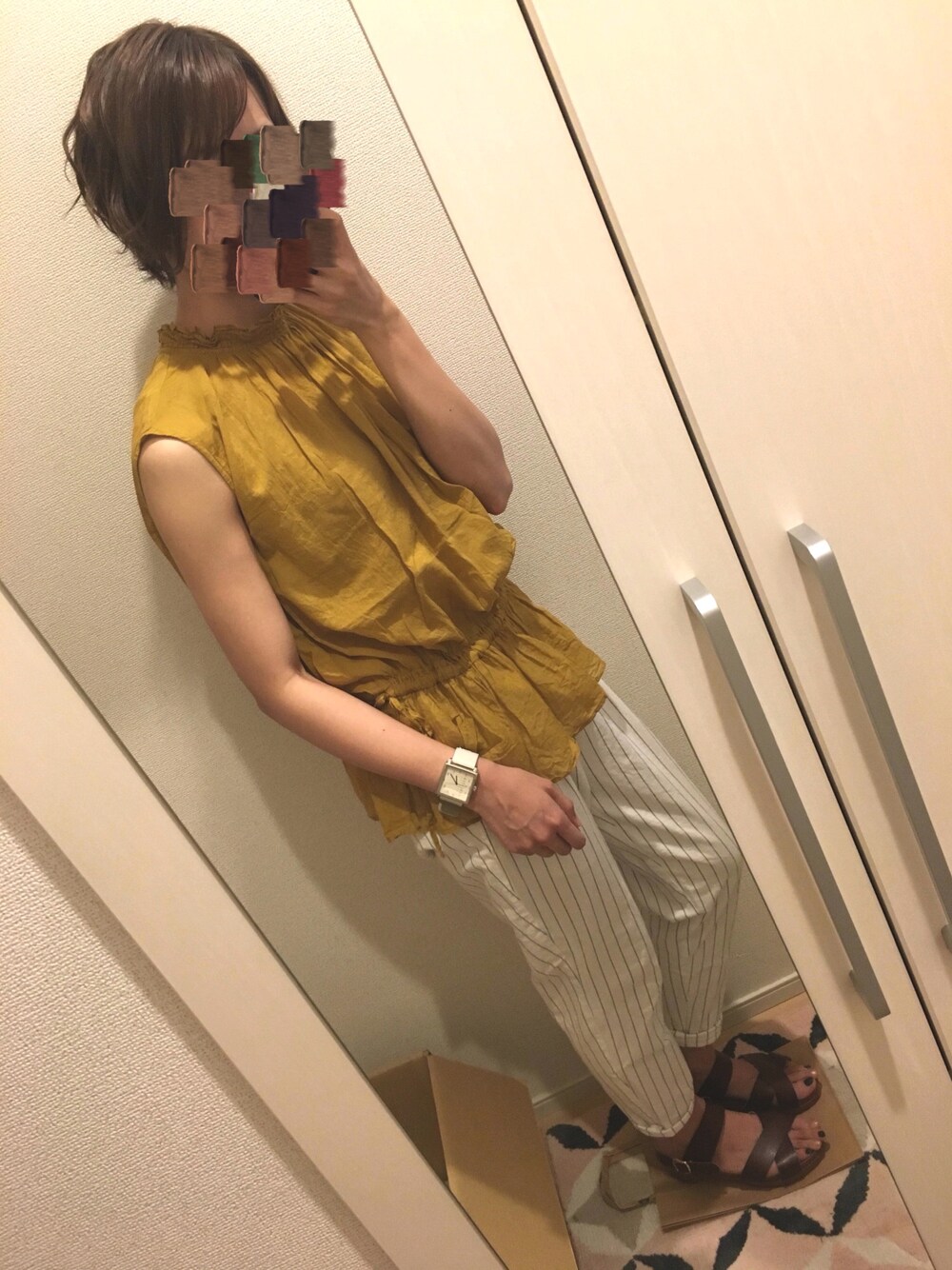 前回の夏コーデに みなさん いいね ありがとうございます😭 もっと夏!なノースリすいません 備忘録としてなので…🙏💦 このマスタード色に合わせる色、 あんまり レパートリーなくって 難しい〜 形とか色が 可愛いから、 もっと着たかったんだけどな〜🍋