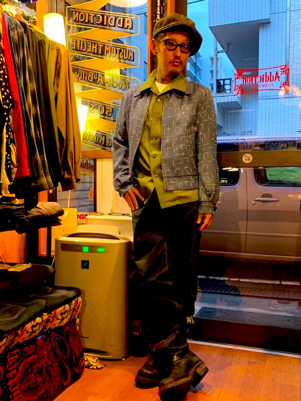 ドライボーンズのキャスケットに グルービンハイギャバジンジャケットに オリジナルのギャバジンシシャツにオリジナルデニムでラフな春のロックロールな感じのコーデ Addiction Store 神奈川県横浜市南区万世町1-1 Addiction Store 12時〜20時 火曜日定休日 Shop インスタ@addictionstore1951 個人 インスタ @addictionkustomtheliferyuta Addiction Store WEB Store https://www.addiction-ktl.net/