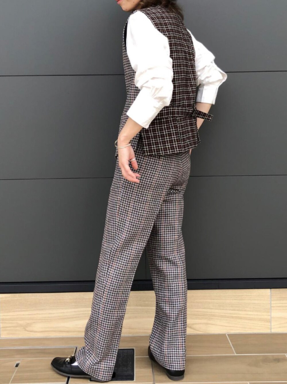 INES DE LA FRESSANGE 2021FW ユニクロでは珍しい、ウィメンズのベスト♡ 前のパーツの柄はパンツと同柄なので、セットアップにもなります!