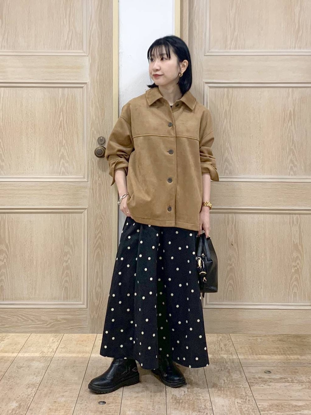 💛各アイテムのおすすめポイント💛  ̄ ̄ ̄ ̄ ̄ ̄ ̄ ̄ ̄ ̄ ̄ ̄ ̄ ̄ ̄ ̄ ̄ 【トップス】 シャツ感覚で羽織れるジャケット。なめらかな素材で着心地がよく、抜け感も出ます。どの色も使いやすく、フェイクスエードの素材感が引き立つカラーです。インナーを着込みやすい、ゆとりのあるサイジング。気温が安定しない端境期のハオリ、ライトアウターとして活躍します。腰回りは隠れつつすっきりとしたシルエットで、ボトムの形を選びません! 【ボトムス】 柄がアクセントになるフレアスカート。スタイルアップを目指して、広がりすぎない程よいフレア分量に調節しています。前ベルトにギャザー寄せがないので、見た目すっきり。ポケットにはタックディテール入りで、コンパクトなトップスともバランス良く着こなせます。全色裏地付きで安心。開き無しで着脱が簡単、ウエストドロストでのサイズ調整も可能です!