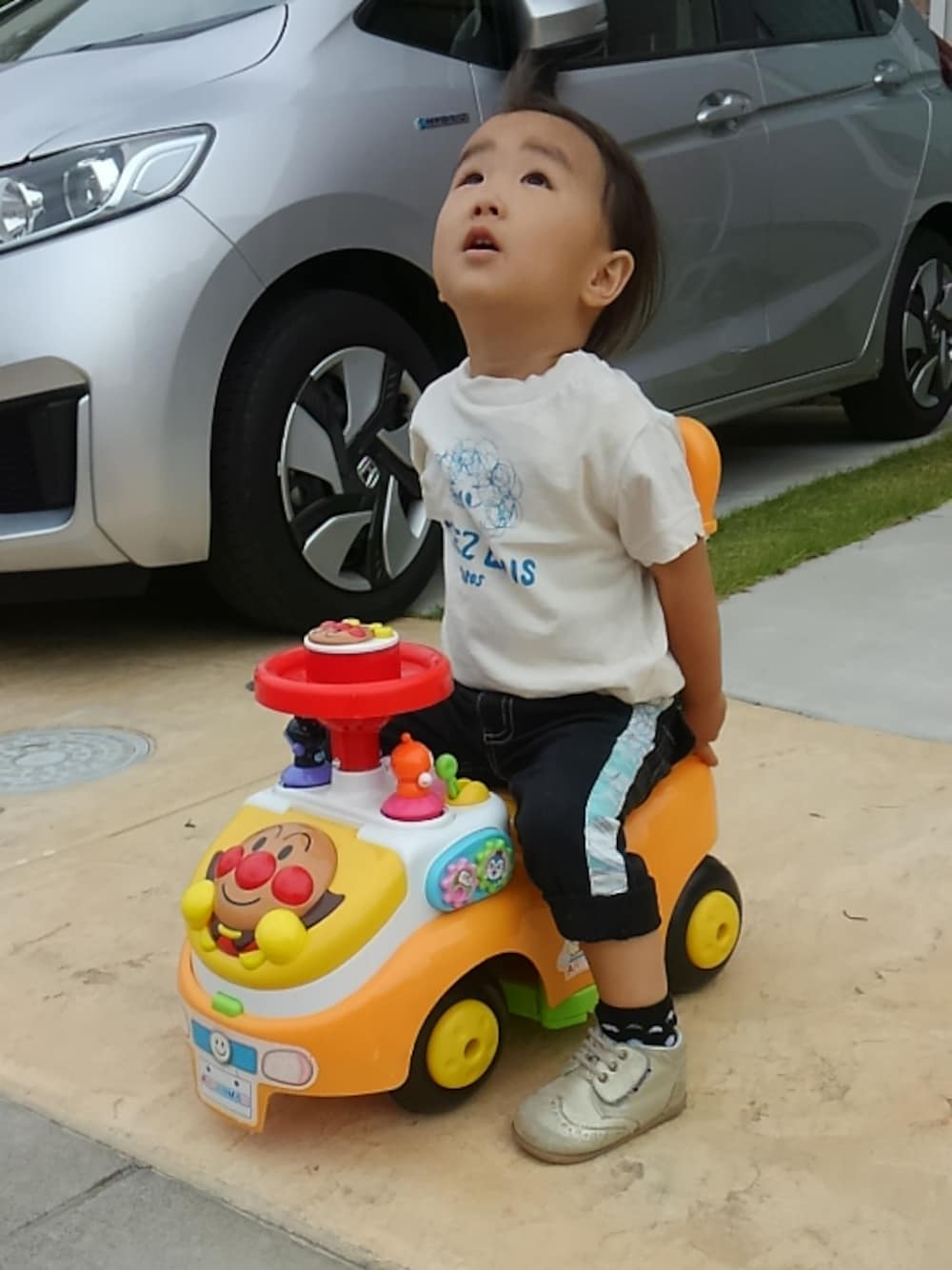2017.6.20 2歳3ヶ月になりました。 そろそろお誕生日に貰った自転車みたいなやつ練習しようか悩むけど、 やっぱりまだ足が短くて転けそうだから このアンパンマンでいいや。