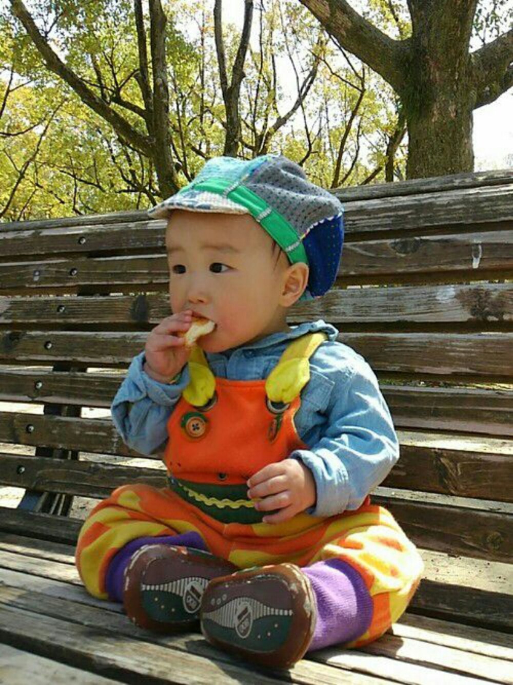 2016.3.23 公園でランチ ちょっと頭が大きくなってきて被れる帽子が増えて嬉しい❗