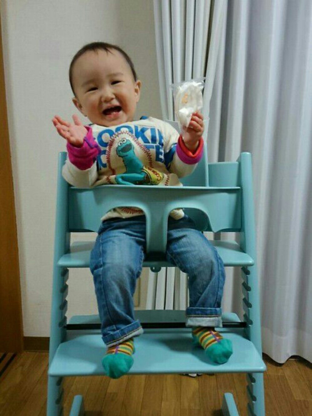 2016.3.27 ご飯の椅子がやっと届いた~🌸(実家用) 気に入ってくれて様子。