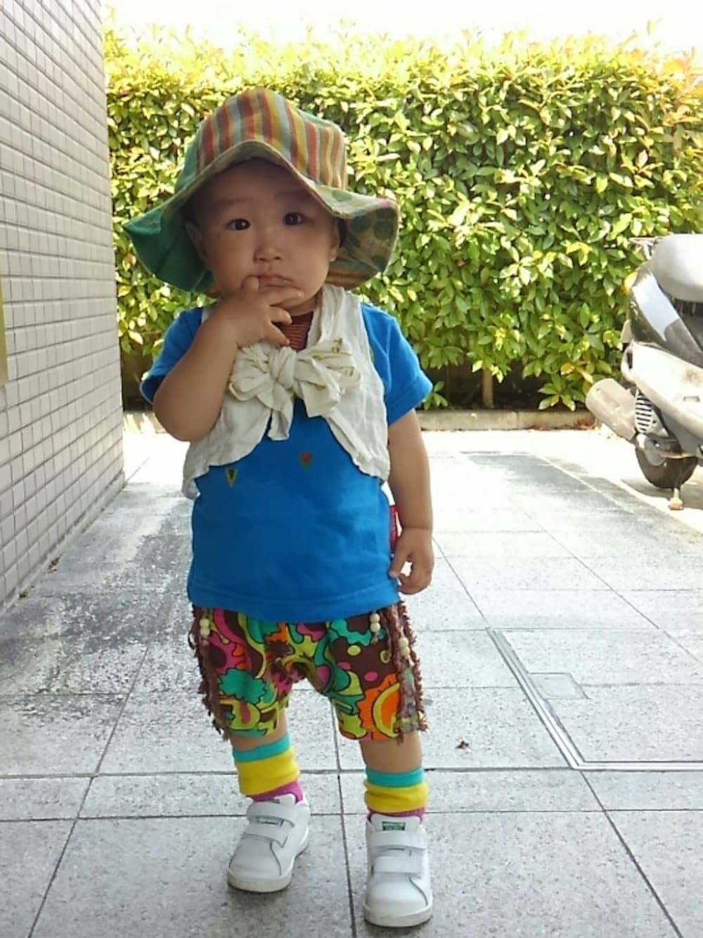 たろうのハット「水玉レインボーHAT」を使ったコーディネート