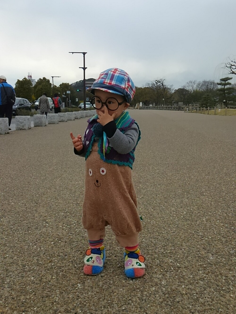 2017.3.26 姫路城へ🏯 さくたろうもメガネがずれると自分で直すようになりました👓 うさぎサロペにパンタくんの靴でガチャガチャしてしまった😂 写真を見てから気付くことが多い😂