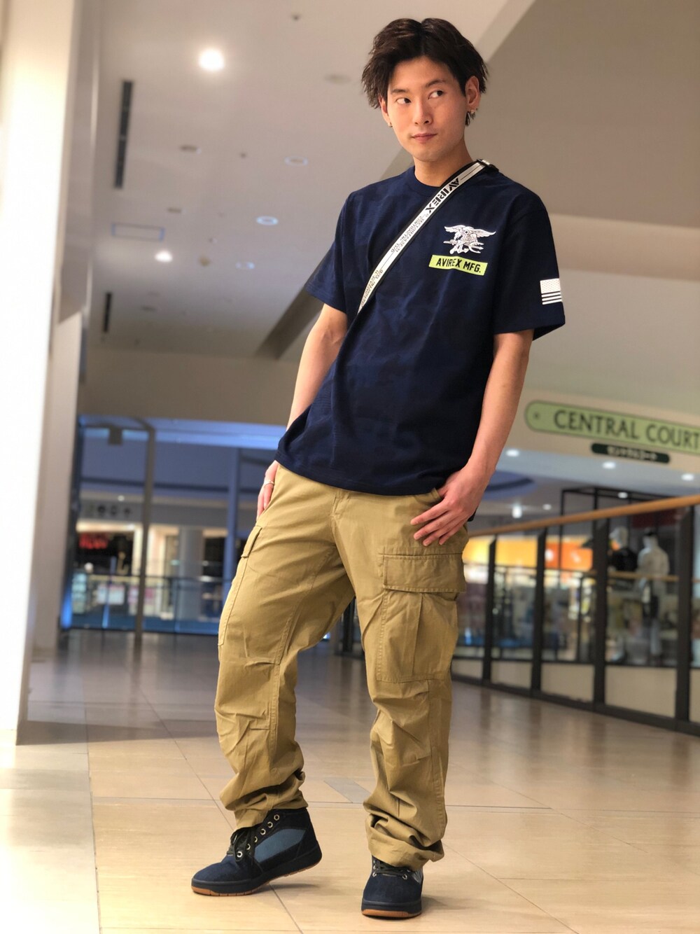 夏のミリタリーコーデです! Tシャツがネイビーカモになっていて珍しいのでぜひお店に見に来てください!! 2019.06.10 AVIREXららぽーと横浜店Style