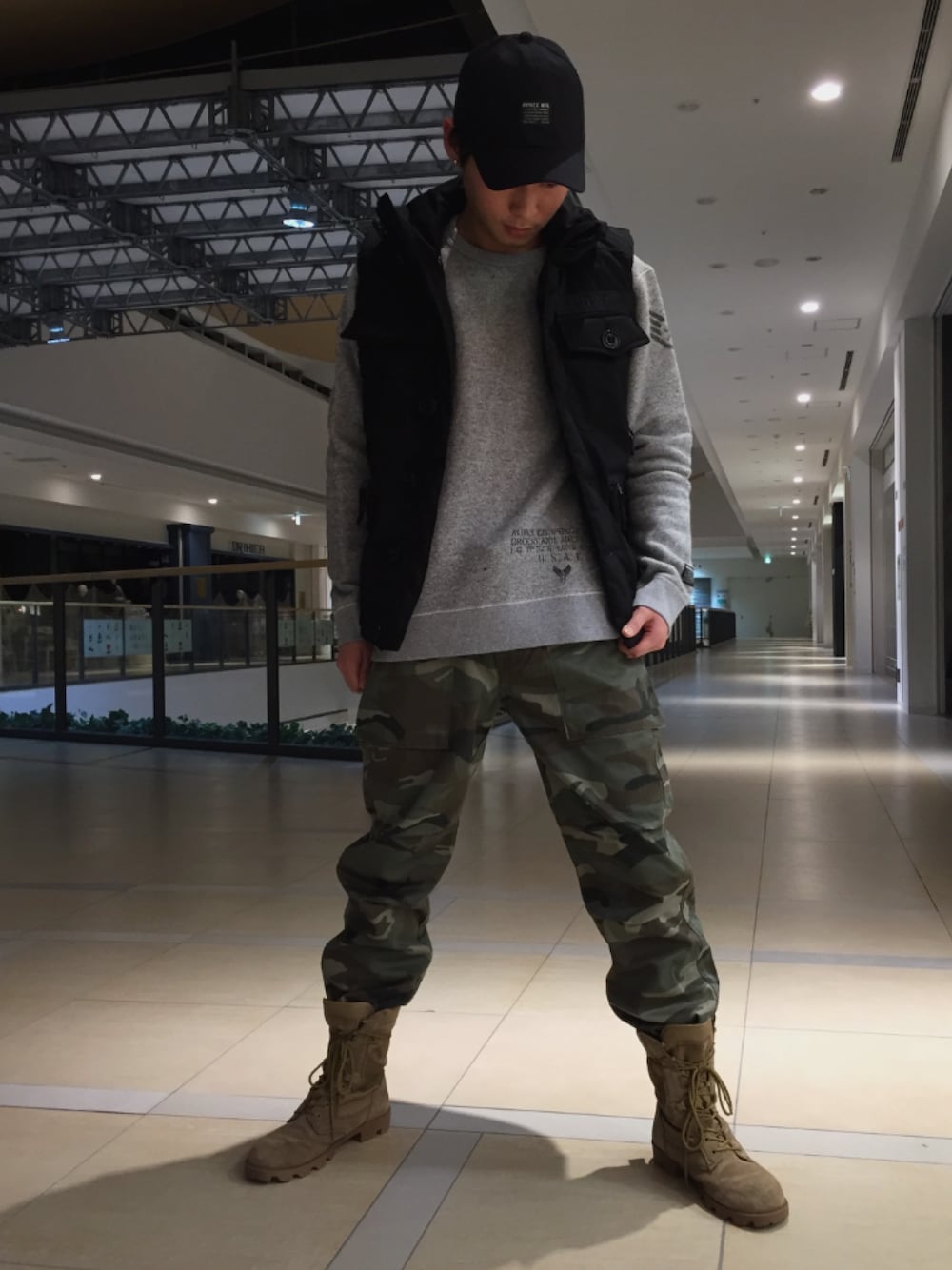 大山凌のダウンベスト「avirex/ アヴィレックス/ P.D.W. TACTICAL VEST/ P.D.W. タクティカル ベスト」を使ったコーディネート