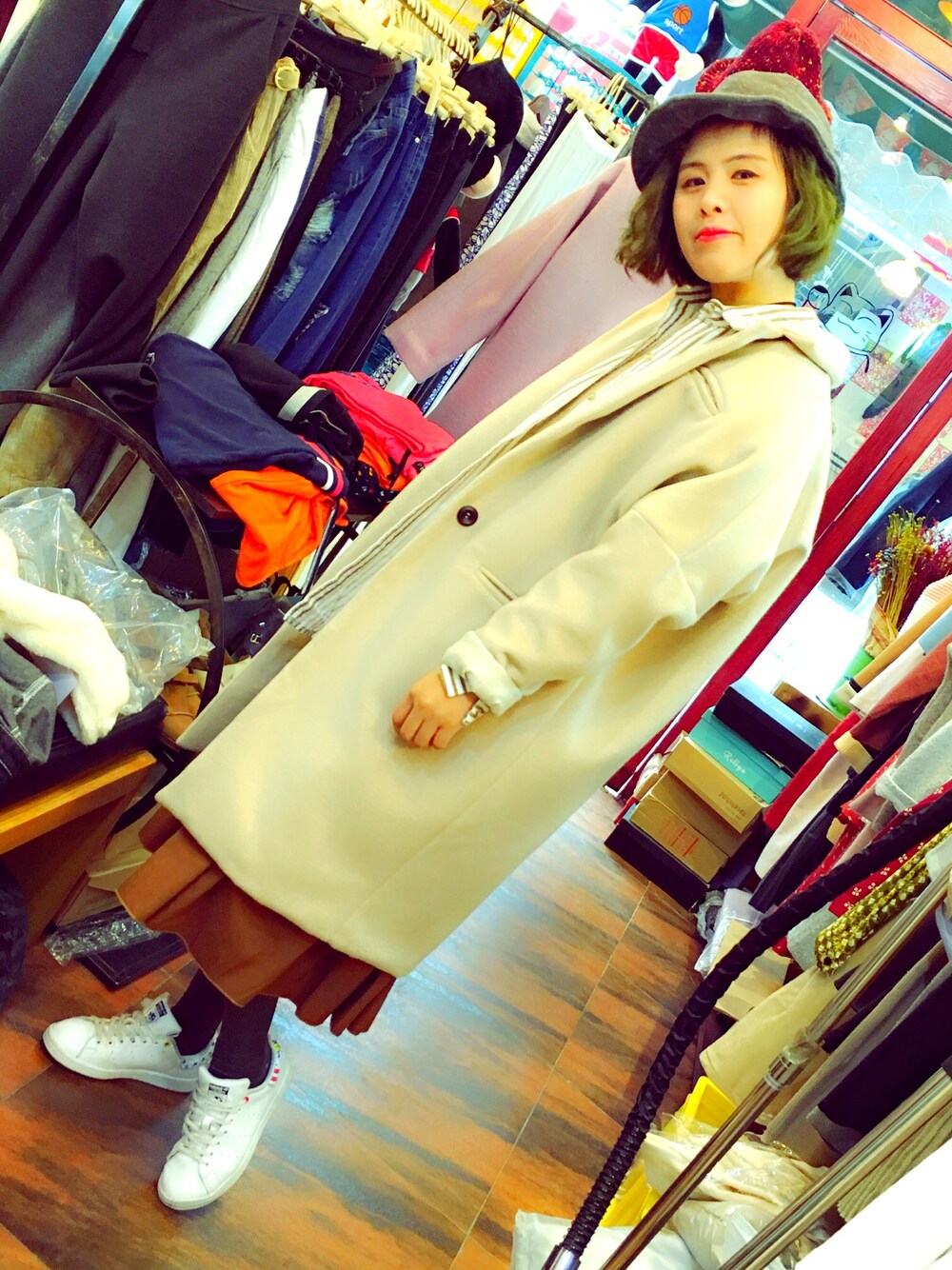 ベージュ系のニット/セーターを着用したレディースの冬コーディネートの1枚目の写真