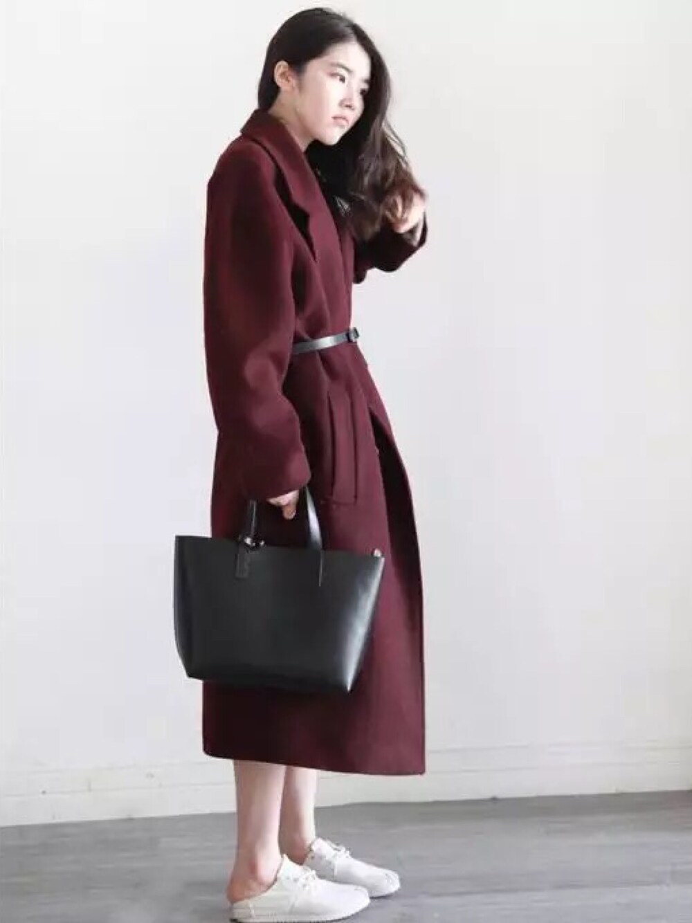 长款大衣+细腰带别有风味!