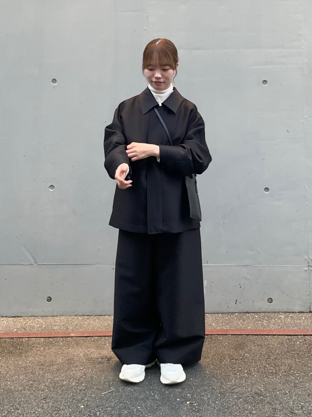 本日はアーバンリサーチのnew basicの上下セットアップのアイテムでシンプルなモノトーンコーデを組んでみました! こちらのセットアップは、ウールシルクの上質なサテン生地が使われており、さらっとした着心地と、綺麗めにも使えるカチッと感が、洗練された都会的なスタイルにしてくれます! ジャケットはfreeサイズでゆったりと着れるので中にたくさん着込んで頂いても大丈夫です! パンツは36のサイズを履いてますが、かなり折ってますので、低身長の方はお直しが必要です!こちらのシルエットも落ち感のあるデザインで、立体的に履いていただけるアイテムですよ!