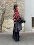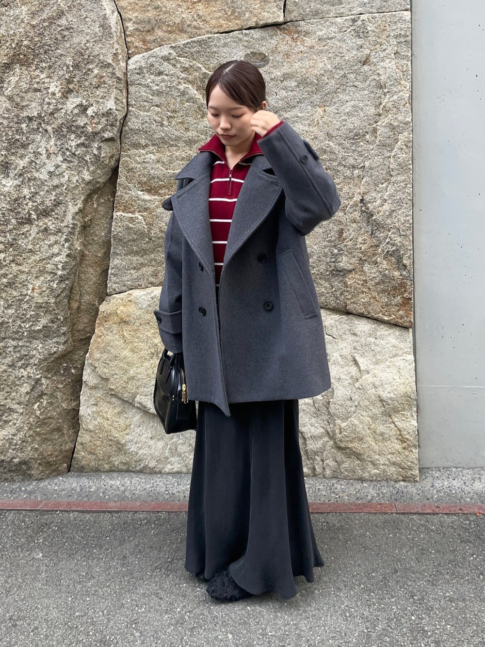本日はグレーのコートと差し色のニットでキレい目なコーディネートを組んでみました! 羽織は毎年人気アーバンリサーチのウール100%のコートでデザインも可愛く、びっくりするくらい軽いですよ!程よい長すぎず短すぎない丈感が魅力のコートで、パンツやスカート何とでも合います✨ インナーはタグ付けできず申し訳ございません。opera sportのボーダーニットです!ジッパーを開けてコートから見えるようにして着こなしていますが、差し色になってとっても可愛いです! スカートはキュプラバイアスカートで、私の身長で2回ほど折って履いてます!サテンのようなキレイめな素材とシルエットですが、スニーカー合わせなどのカジュアルも合うので、その組み合わせもオススメですよ✨