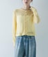 本日は春物アイテムでコーディネートを組んでみました! トップスはモヘヤ素材でもちもち気持ちの良い素材のカーディガンです!他の色味はグレーとネイビーがありますが、より春な感じはこちらのイエローです!🌼若干の透け感があるので、カットソーを中に着てます〜!短い丈感が可愛い〜 パンツはリアルバイしたウール混タックギャザーストレートパンツです!8センチ裾上げしました!⭐︎またウエストにゴム紐がついているので、調節が可能ですよ〜!折って履いても良いかもしれません!ゆるっと着れるパンツでオススメです!